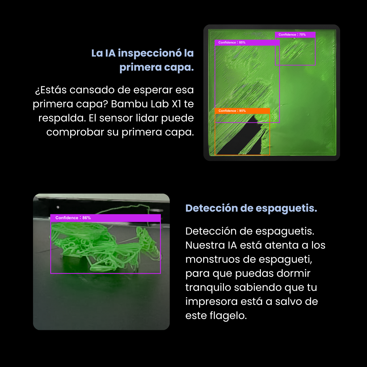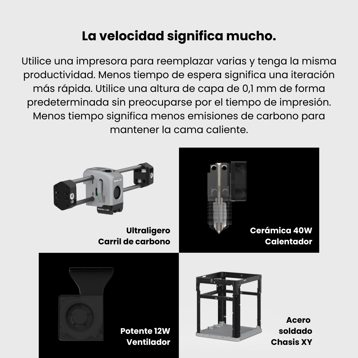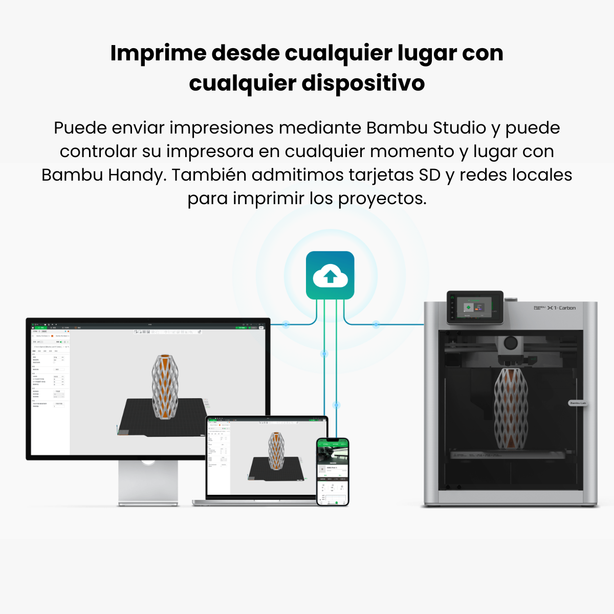 Bambu Lab es una empresa de tecnología enfocada en impresoras 3D de escritorio, destacándose por sus modelos de última generación como la X1 Carbon. Esta impresora ofrece mayor compatibilidad con materiales como PA, PC, PET y TPU, y es ideal para polímeros reforzados con fibra de vidrio y carbono. Cuenta con IA para detectar fallos de impresión, nivelación automática y un sensor lidar para garantizar la calidad de la primera capa. El AMS puede enviarse en una caja separada, pero siempre es original y con garantía oficial.